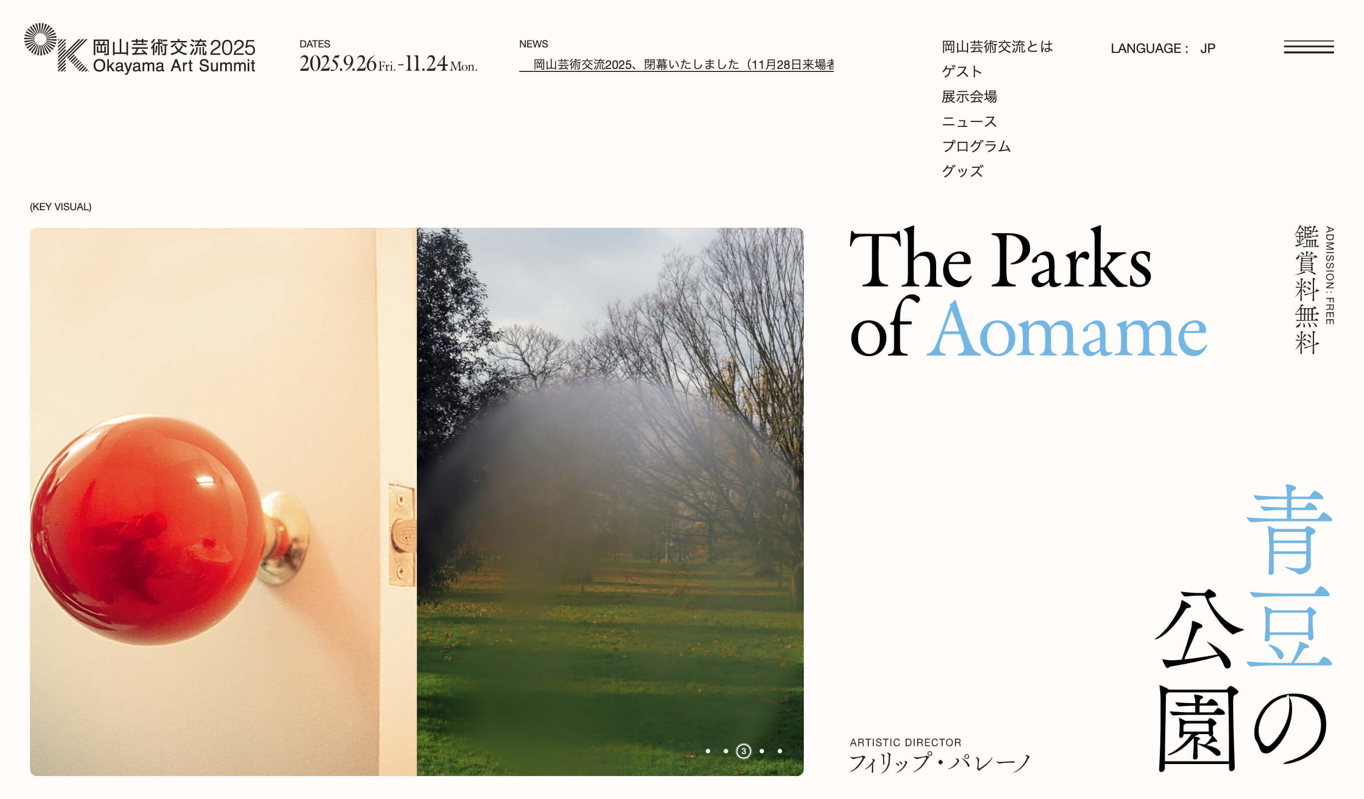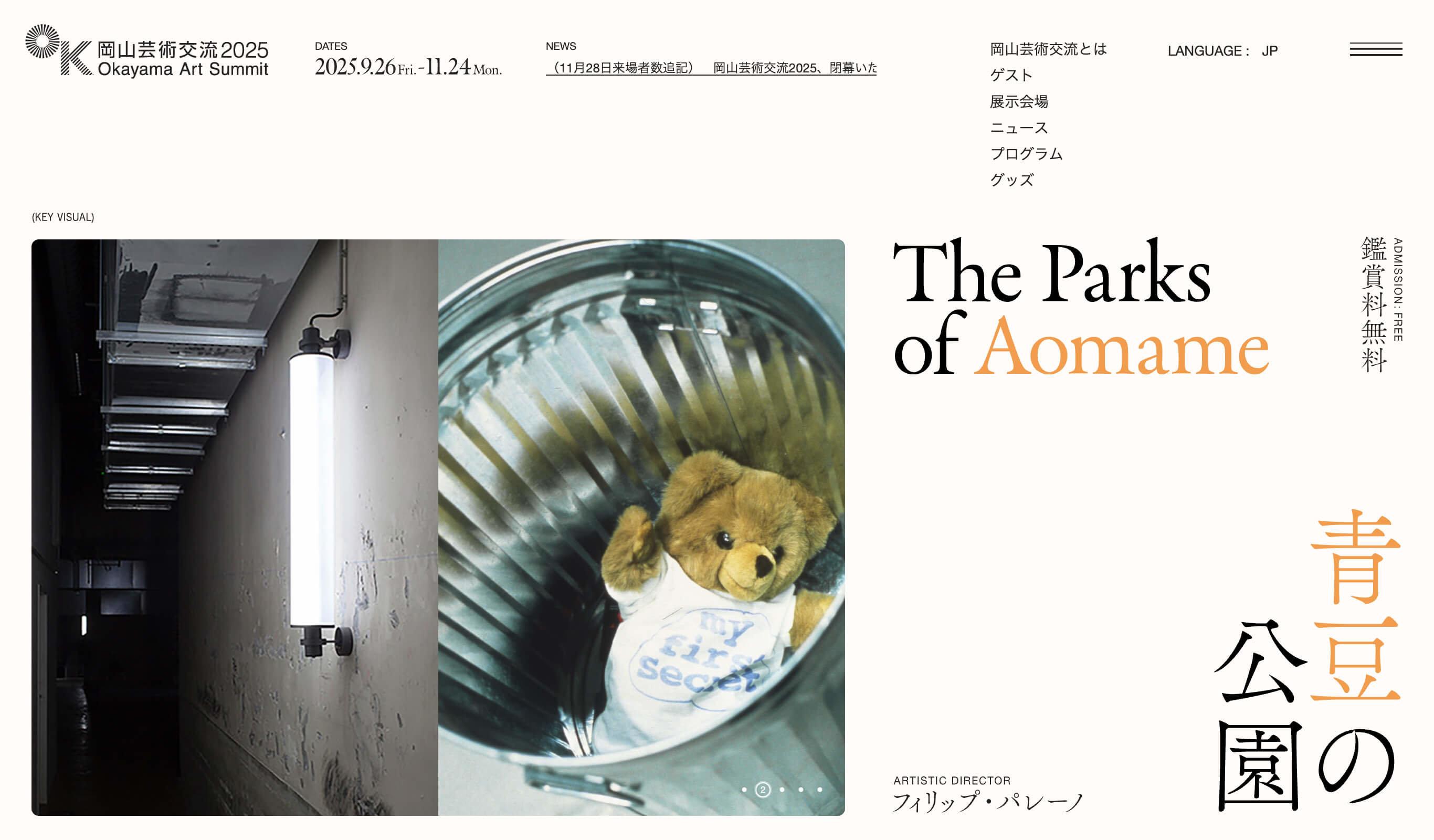 岡山芸術交流2025 公式サイトを制作しました。3年に一度、岡山市を舞台に街全体が現代アートで彩られる国際展。 岡山芸術交流2025 公式サイトを制作しました。3年に一度、岡山市を舞台に街全体が現代アートで彩られる国際展。